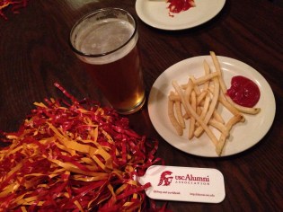 Admission was $20 and included a drink ticket and appetizers. Golden Road is known for it’s vegan-friendly menu, so this was the perfect spot to host veg and non-veg Trojan alumni. There were mediterranean crustinis (vegetarian), french fries, sweet potato fries, and some non-veg options.