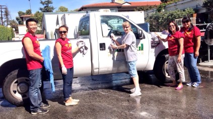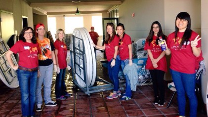After introductions, PHS staff split us into three groups which were tasked with washing, moving and taking inventory of tables and chairs; building chair racks; and washing PHS adoption vans and trucks.